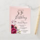 50th birthday burgundy rose gold floral invitation postcard