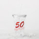This 16 ounce acrylic tumbler features a "50 and fabulous" birthday celebration design. The number 50, in faux coral glitter, dominates the top of the design while fabulous, is curved up along the bottom. Personalize the bottom text, remove the text or click customize to select a typeface style, size, and color you prefer. The template field information will change on both sides.
