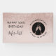 On a background of delicate girly blush pink our horizontal 50th Birthday party banner features a sparkling blush glitter ombre overlay for extra party bling. Inside a black and rose gold circle logo, bubbling champagne glasses clink together in a toast to the birthday honoree. You can easily revise the milestone birthday details on the personalisation template.