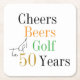 50th Birthday Cheers and Beers Golf Party Square Paper Coaster