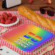This cheerful and fun birthday themed paper plate design features a large number “50” having a colorful rainbow spectrum inspired gradient pattern. It also features the message “HAPPY 50th BIRTHDAY,”, and a customizable name. The background also features a vibrant multicolored rainbow spectrum inspired gradient pattern. Joyful paper plates like this might be fun to use at a birthday party being held for somebody who is celebrating their 50th birthday. [~Z0000583]
