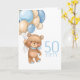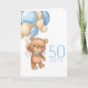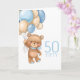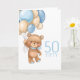50TH birthday cute blue balloons boy teddy card