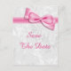 Womens' elegant 50th Birthday Party save the date postcards. Woman's fiftieth birthday party save the date cards. Beautiful white damask pattern background of flourishes and swirls with a pretty, stylish romantic pink bow and ribbon image. These glamourous, chic, classy save the date postcards are beautifully sophisticated and are decorated / printed on both sides. PLEASE NOTE: All products on Zazzle have flat printed images. Bow and ribbon images purchased from digital-designs-by-elena. If you need any assistance customising your product please contact me through my store and I will be happy to help. I also have other matching products in my store.