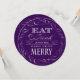 Elegant round customisable invitation with the words Eat, Drink and be Merry. Easy to edit, suits many occasions. The background colour - shown as purple here - is customisable.