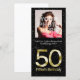 Rich, sophisticated and elegant, this 50th birthday gleams with the shine and glitter of metallic look gold, gilded in a shiny finish, with a black sparkle pattern background. Sure to bring an air of glam and bling to any fiftieth birthday celebration, party or gift idea. Design Copyright © CustomInvitesOnline.