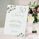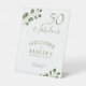 Rustic modern minimalist watercolor eucalyptus greenery foliage 50th (or any age) adult birthday party table top welcome sign.