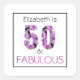 50th Birthday Fifty and Fabulous Purple Floral Square Sticker