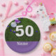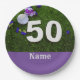 50th Birthday for golfer with golf ball and flower Paper Plate