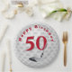 Close-up of white golf ball pattern with a golf club for 50th birthday.