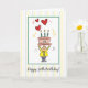 This birthday card has a cute cartoon holding a cake showing “50” and filled with hearts on top. On someone’s 50th birthday, send this card to extend your wishes to them. Perfect to send to a relative or friend to complete their 50th birthday.