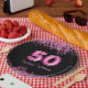 Elevate your 50th birthday party with these modern, stylish, and glamourous paper plates designed to make a statement. The design features a captivating combination of pink and black, exuding an air of sophistication and elegance. The number 50 takes centre stage, beautifully written in a hot pink balloon-style letter font, adding a touch of vibrancy and celebration to the plates. Against a sleek matte black background, elegant faux pink glitter effects gracefully adorn the top and bottom, creating a dazzling visual impact. The name of the birthday celebrant is presented in a contemporary pink-coloured hand-lettered style script, allowing for a personalised touch. Embrace the option to personalise and add the name of the birthday celebrant, creating a memorable and customised experience for the party. These paper plates not only offer practicality but also serve as a stylish addition to your milestone celebration, making it an event to remember.