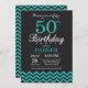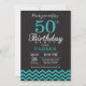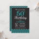 50th Birthday Invitation with Black and Teal Chevron. Chalkboard. Adult Birthday. Man or Women Bday Invite. For further customisation, please click the "Customise it" button and use our design tool to modify this template.