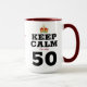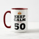 A fun birthday mug based on the "Keep Calm and Carry On" idea . 50th birthday celebration milestone gift. Easy to add your personalized message opposite the handle to make this "Keep Calm" Mug special.