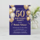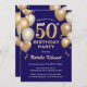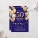 50th Birthday Navy Blue and Gold Glitter Balloons Invitation