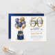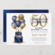 This fabulous men's 50th birthday navy blue cake invitation featuring a 2-layer navy blue and gold cake with navy blue and gold balloons and the number 50 in gold would be perfect for celebrating your husband, brother, dad, friend, uncle. It is traditional and classic while being fresh, modern and contemporary. The back is a coordinating navy blue foil.