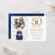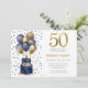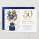 This fabulous men's 50th birthday party invitation featuring a 2-layer navy blue and gold cake with navy blue and gold balloons, the number 50 in gold and shiny blue confetti would be perfect for celebrating your husband, brother, dad, friend, co-worker. It is traditional and classic while being fresh, modern and contemporary. The back is a coordinating navy blue foil.