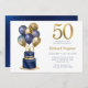 This fabulous men's 50th birthday party invitation featuring a 2-layer navy blue and gold cake with navy blue and gold balloons and the number 50 in gold would be perfect for celebrating your husband, brother, dad, friend, co-worker. It is traditional and classic while being fresh, modern and contemporary. The back is a coordinating navy blue foil.