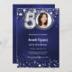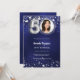 A modern, stylish photo invitation for a 50th birthday party. A navy blue background, decorated with stars. The blue colour is uneven. Personalise and add your photo and party details.