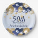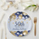 50th Birthday Navy Gold Balloons Party Paper Plate