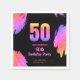 50th birthday neon pink glitter party napkin