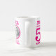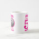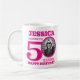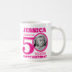 Happy 50th Birthday pink text, name and two photos from now and then. Fun double sided 50th personalised photo mug in bold pink text design. Personalise this birthday mug with a photograph of the birthday girl in the middle of the number 0 on both the front and the back. Great idea for adding some fun to a milestone fiftieth birthday celebration and to keep as a special keepsake. Other matching items and colours options are available. Exclusive design by Sarah Trett for www.mylittleeden.com