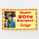 Celebrate her special day with this 50th Birthday Orange Flower Photo Banner. Personalise it with her photo, name, and age. This colourful floral banner features orange blossoms and a bold yellow background with bright red text.