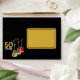 50th birthday party 50 rocks envelopes with three cool watercolor guitar designs on black background. An electric guitar with Fire flame pattern and red pick guard, a multicolored semi acoustic guitar and a psychedelic classic acoustic guitar art illustration black and gold modern cool typography. This easy to use template with name and return address creates the perfect party stationary to celebrate fifty in rock n roll style and is ideal for a guitarist, musician and music lovers. Any guitar player will tell you that you can never have too many guitars. This cool modern musical instrument design celebrates the music energy of this wonderful musical instrument and is the perfect way to rock a fiftieth birthday celebration. Original artwork by artist Catherine Sweetman
