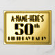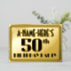 The front of this elegant and 1920s-1930s era style inspired fiftieth birthday celebration foil invitation card design features an editable name, an art deco look inspired number “50th”, the message “BIRTHDAY PARTY”, and a multi-line border. The back features personalised details about the event, such as the location, date, time, and any other information that may be useful. Stylish, luxurious, personalised invitations like these might be used to invite attendees/guests to a birthday gathering/party being held in celebration of somebody’s 50th birthday. [~Z0000606]