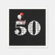 Red, white and black party balloon bouquet on black background for 50th birthday.