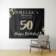 50th Birthday Party Black Golden Backdrop. 50th birthday tapestry for him or her. Use the tapestries as a backdrop for the 50th birthday party. Personalise it with your text.