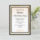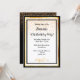 An elegant birthday party invitation card for a 50th birthday for both men and women. Templates for your information. Black and faux gold frames and golden confetti rain. Elegant white backdrop, black letters.
