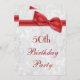 Womens' elegant 50th Birthday Party invitations. Woman's fiftieth / fifty years old birthday party invites. Beautiful white damask pattern background with a pretty, stylish red bow and ribbon image. These glamourous, chic, classy invites are beautifully sophisticated and are decorated / printed on both sides. PLEASE NOTE: All invites on Zazzle have flat printed images. Bow and ribbon images purchased from digital-designs-by-elena. If you need any assistance customising your invitation please contact me through my store and I will be happy to help.