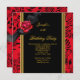 Elegant Damask Red Gold Rose Flower Black 50th 40th, 30th, 60th, Birthday Party Gold Black womans Girl Invitation Formal Use for any event invitation Customise to change age and details