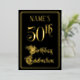 The front of this elegant and opulent foil fiftieth birthday party/celebration invitation design features the message “50th Birthday Celebration” in ornate script-style text. It also features a custom name. The background of the front is coloured black by default (although it can be customised to a different colour). The back features personalised details about the event, such as the date, time, location, and any other information that may be relevant. Ornate, luxurious, customisable invitations like these might be used to invite guests to a birthday party being held to celebrate somebody’s fiftieth birthday. [~Z0000589]