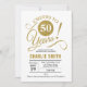 50th Birthday Party Invitation in faux glitter Gold and White. Cheers to 50 years! Elegant modern typography script style design.