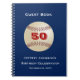 A baseball on a dark blue background decorates this unique and fun 50th Birthday Party Guest Book. The cover has white lettering on a dark blue background. Although default says "50", you can easily change the text for ANY NAME, AGE, EVENT, DATE, etc. Sports fans will love it! All Rights Reserved © 2014 Alan & Marcia Socolik.