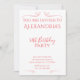 This is a modern, minimal, 50th Birthday party invitation. It has trending typography in red/ pink with a white background. On the front it says, "You Are Invited To Alexandria's 50th Birthday Party", with information about the date, venue and RSVP details underneath. The text is framed by stylish swirl hearts. This elegant and modern design is perfect for your 50th birthday party or celebration. Simply type your details, name, age, date, venue and RSVP information, into the personalise this text box. Here you can also change the rest of the text if you want to. To change the colour or font, check out the design editing tool. If you need help with personalisation, or for a custom design contact me via zazzle chat or email: ursuladawnmoon@gmail.com