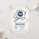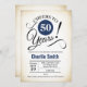 50th Birthday Party Invitation in Navy Blue White Black with retro creamy background. Cheers to 50 years! Can be personalized into any year.
