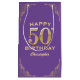 50th Birthday Party Purple and Gold Glitter Frame Small Gift Bag