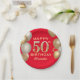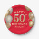 50th Birthday Party Red and Gold Balloons Paper Plate