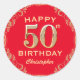 50th Birthday Party Red and Gold Glitter Frame Classic Round Sticker