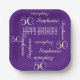 50th Birthday Party Repeating Name Square Purple Paper Plate