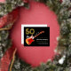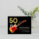 50th birthday party gold foil and black rock and roll 50 Rocks invitation for him because your rockstar husband, boyfriend, dad or friend Rocks 50. Flame electric guitar with red pick guard illustration, musical notes and gold modern typography script to celebrate them in rock n roll style. Easy to use templates so you can add the birthday celebrants name, Ideal for a black and gold colour theme. Check out the rock and roll 50th birthday party 50 Rocks collection for matching party supplies. Musicians, guitar players and live music lovers will love this trendy musical theme. Original artwork by artist Catherine Sweetman