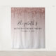 Chic personalised photo booth backdrop tapestry for your 50th birthday party featuring rose gold faux glitter dripping down an ombre rose gold background and your first name in a stylish script. You can change the birthday year and add the date or leave blank.