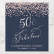 50th Birthday Party Rose Gold Glitter Blue Wine Label