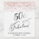 Chic 50th birthday party wine labels with "50 & Fabulous" in a stylish light rose gold script, modern typography and a rose gold faux glitter confetti overlay.
