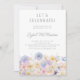 An elegant watercolor floral arrangement of vintage flowers decorates the bottom border of this 50th birthday party invitation. The soft pastel flowers are accented with modern line art.