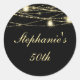 50th Birthday Party String Lights Jars Black Gold Classic Round Sticker
