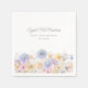An elegant watercolor floral bouquet of vintage flowers decorates the top of this 50th birthday party custom cocktail napkin. The soft pastel flowers are accented with modern line art. The birthday celebrant's name and birthday follow. All text is editable.