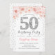 50th Birthday Party - White Silver Pink Invitation